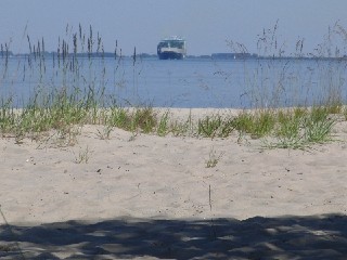 vor Wind und Sonne. Beobachten Sie wie in der nahen Fahrrinne der Elbe